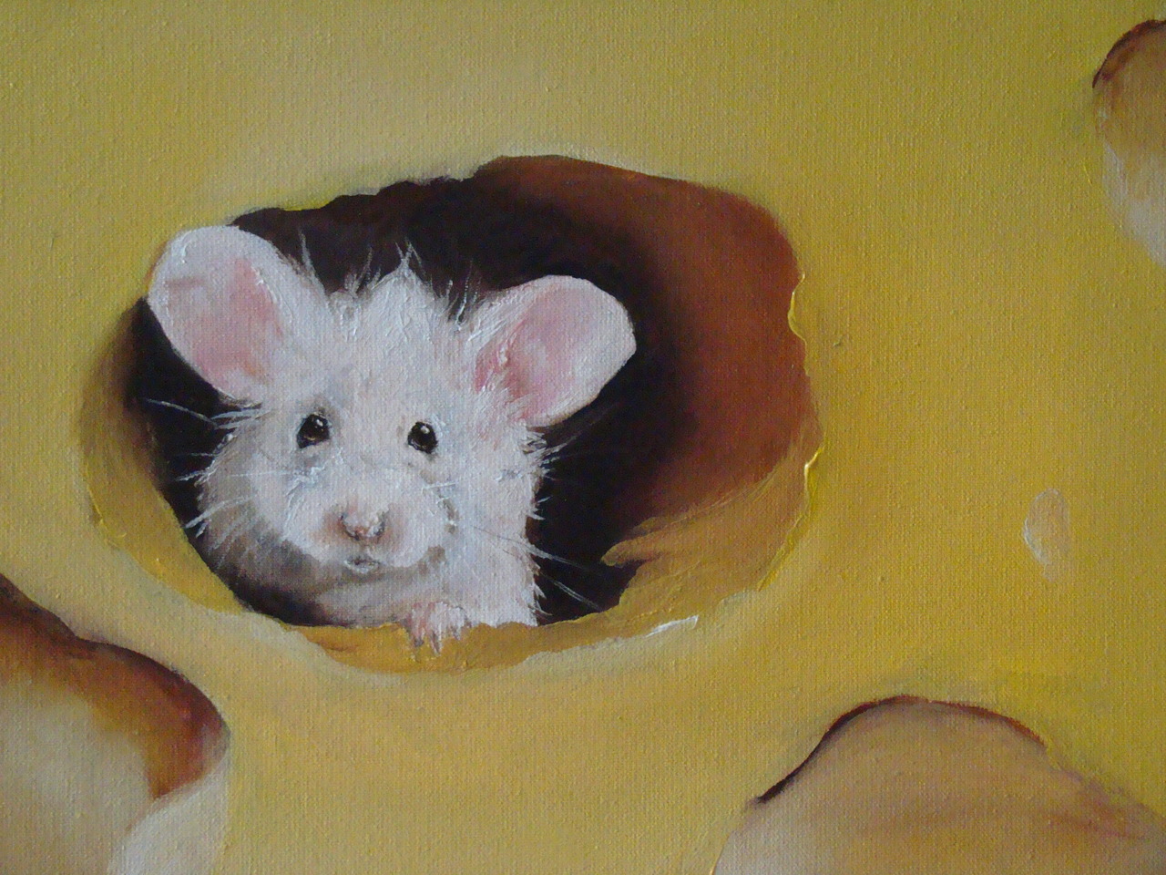 Muis Mouse Cheese Kaas Olieverfschilderij Geel Yellow Oilpainting Realistic Realistisch