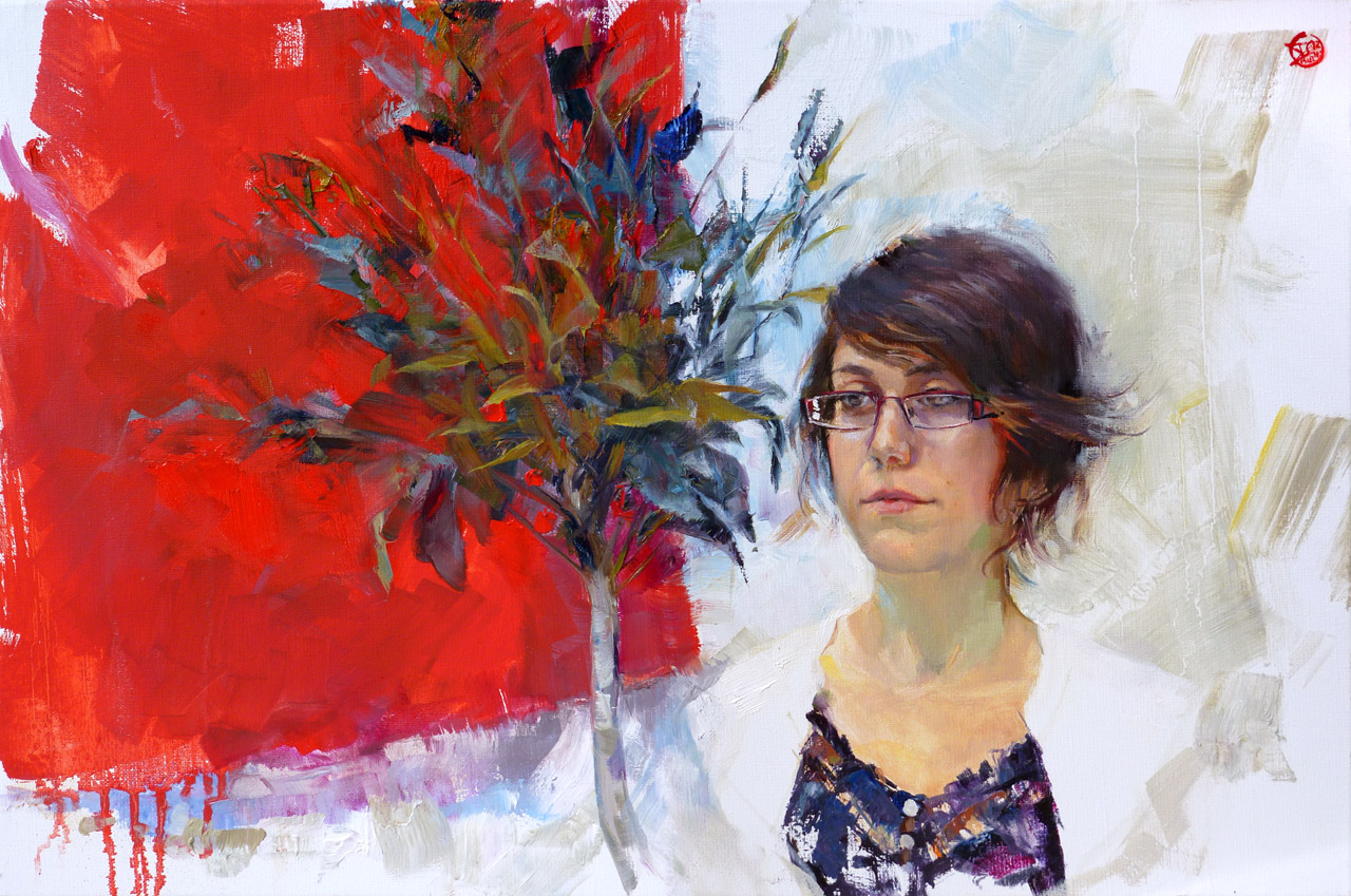 Meisje Rood Vrouw Portret Gezicht Woman Oil Canvas Olie Doek Portrait Red Gekleed Girl Face Hair Kleur Color Canadese Elise Canadian