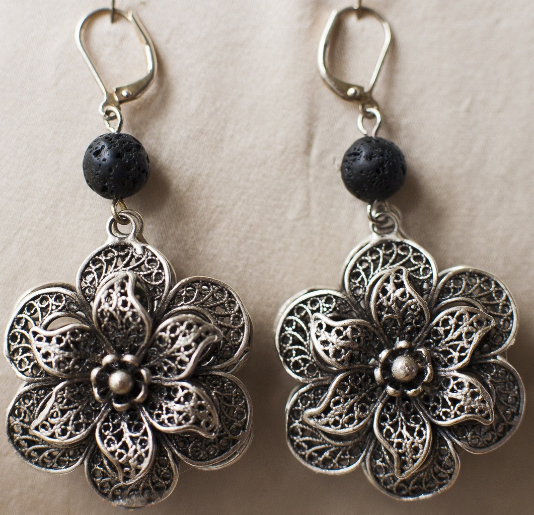 Lava en silver oorringen