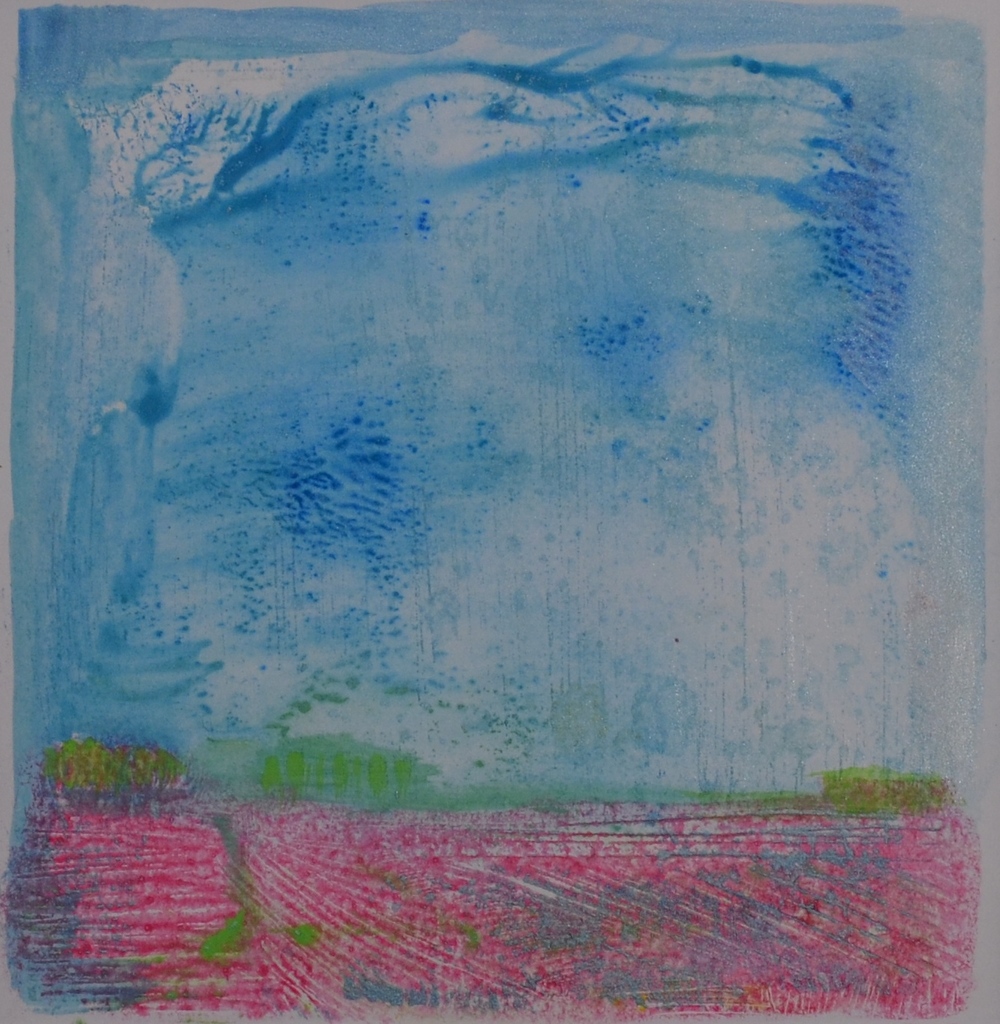 Deze drogenaald ets is gecombineerd met monoprint. De afmetingen van deze handgemaakte print zijn afgestemd op de ikea lijsten (ribba artno. 000.780.32) en passen perfect in deze passe-partout. Zo kun je zelf eenvoudig een lijst naar eigen smaak uitkiezen. prijzen zijn zonder lijst en passe-partout.