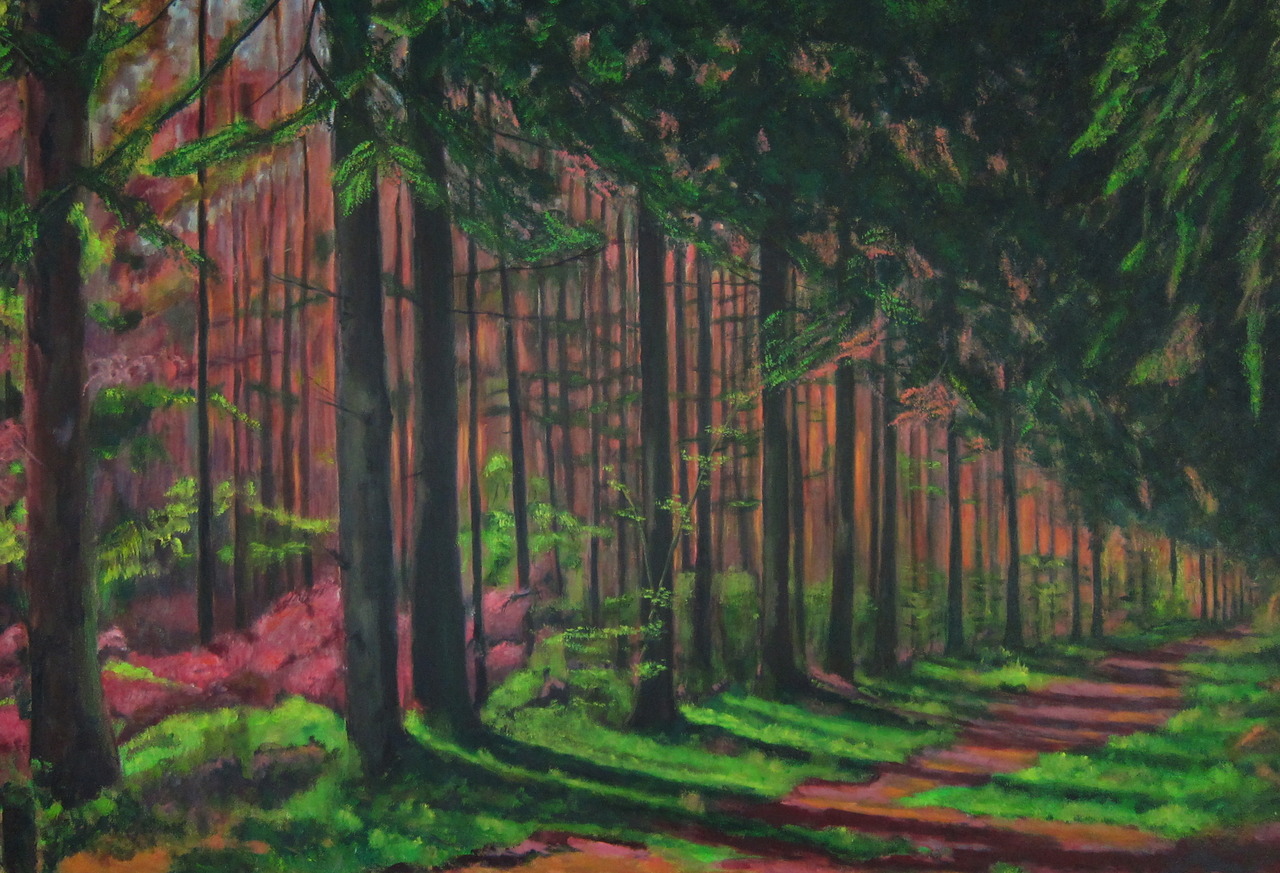 Oranje Groen Licht Bomen Roze Bos Gras Zand Struiken Pad