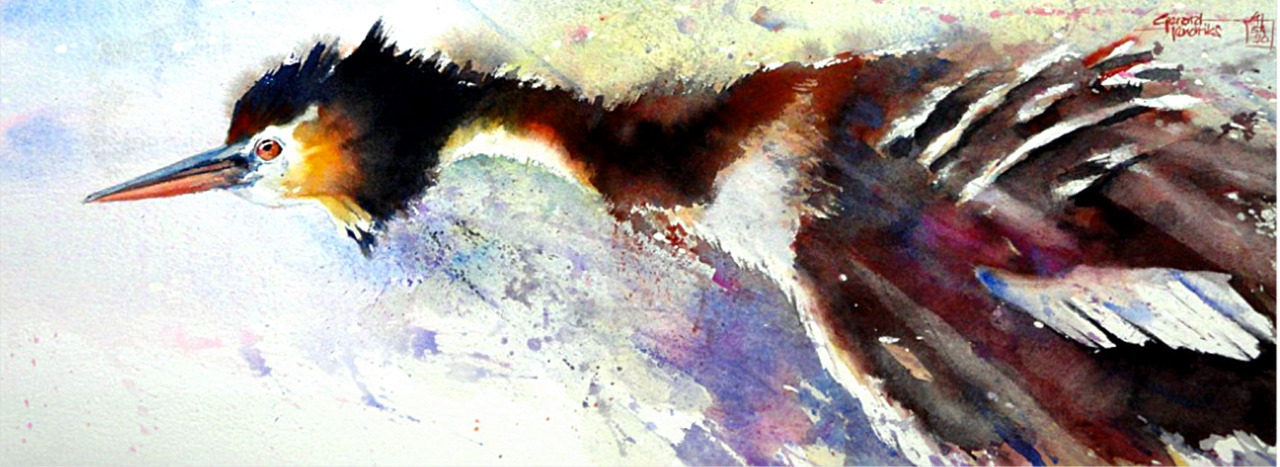Fuut 5420 Deze aquarel is te koop bij; www.artfan.de/hendriks-gerard.html