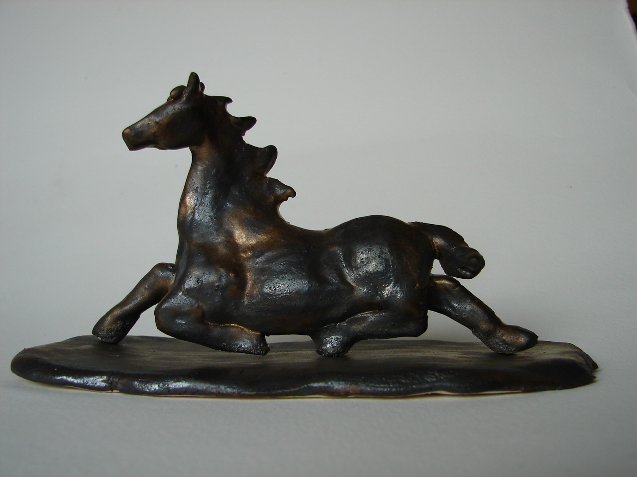 Klein paardje in gymnastische houding op onderplaatje Bronsglazuur. Helaas is ook dit paardje gesneuveld tijdens de Kusntjaarbeurs 2012.
