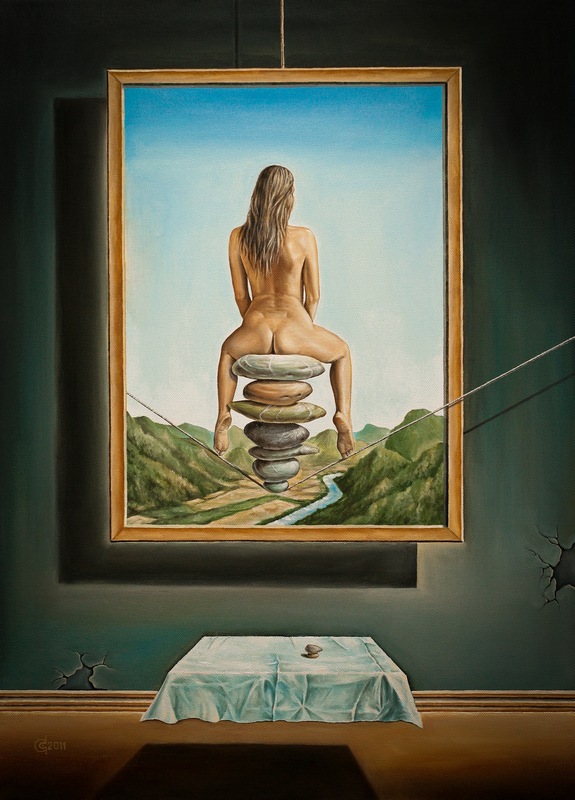 For Sale Blue Painting Figurative Clouds Oil Contemporary Surrealism Nude Woman Nature