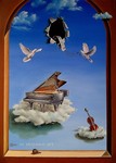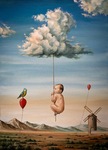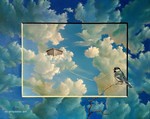 For Sale Painting Figurative Clouds Oil Contemporary Birds Surrealism Kid Nature Animal
