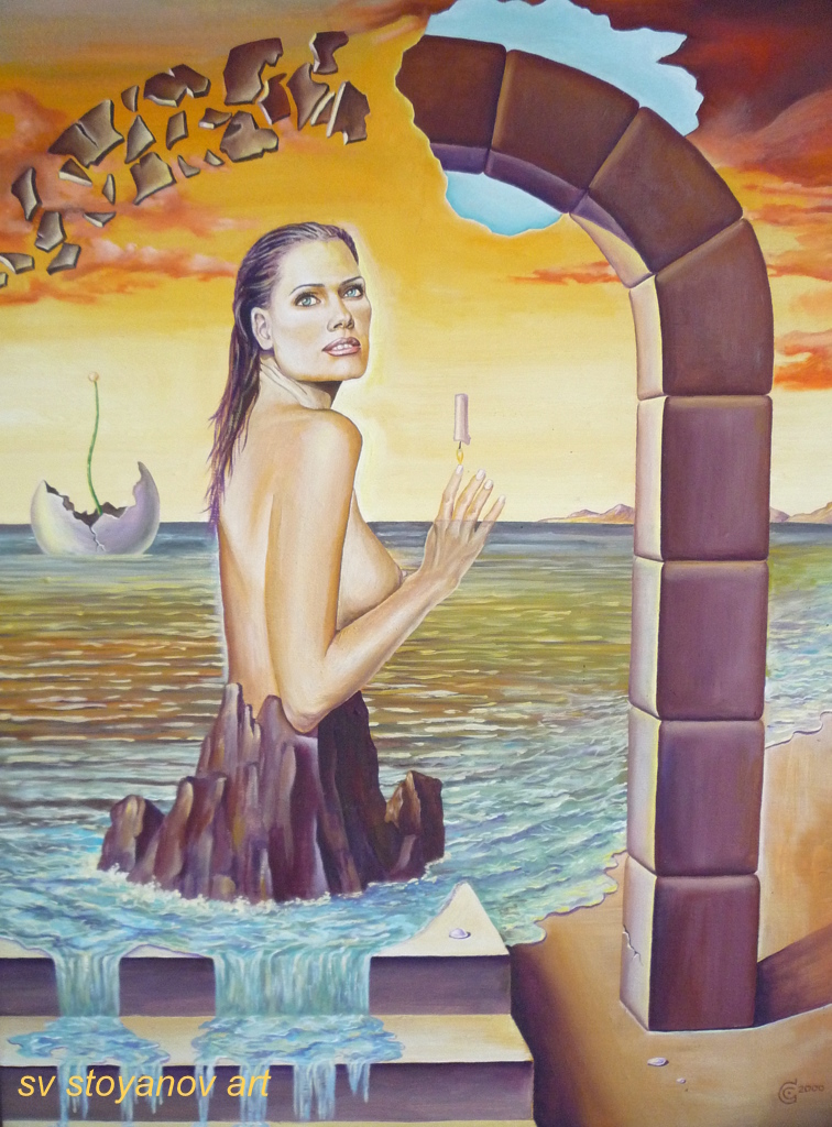 Surrealism Fantasy Nude Woman Sea Clouds Face For Sale Painting
