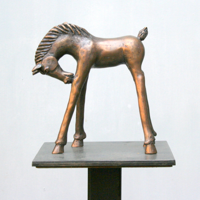 veulen op knie bijtend