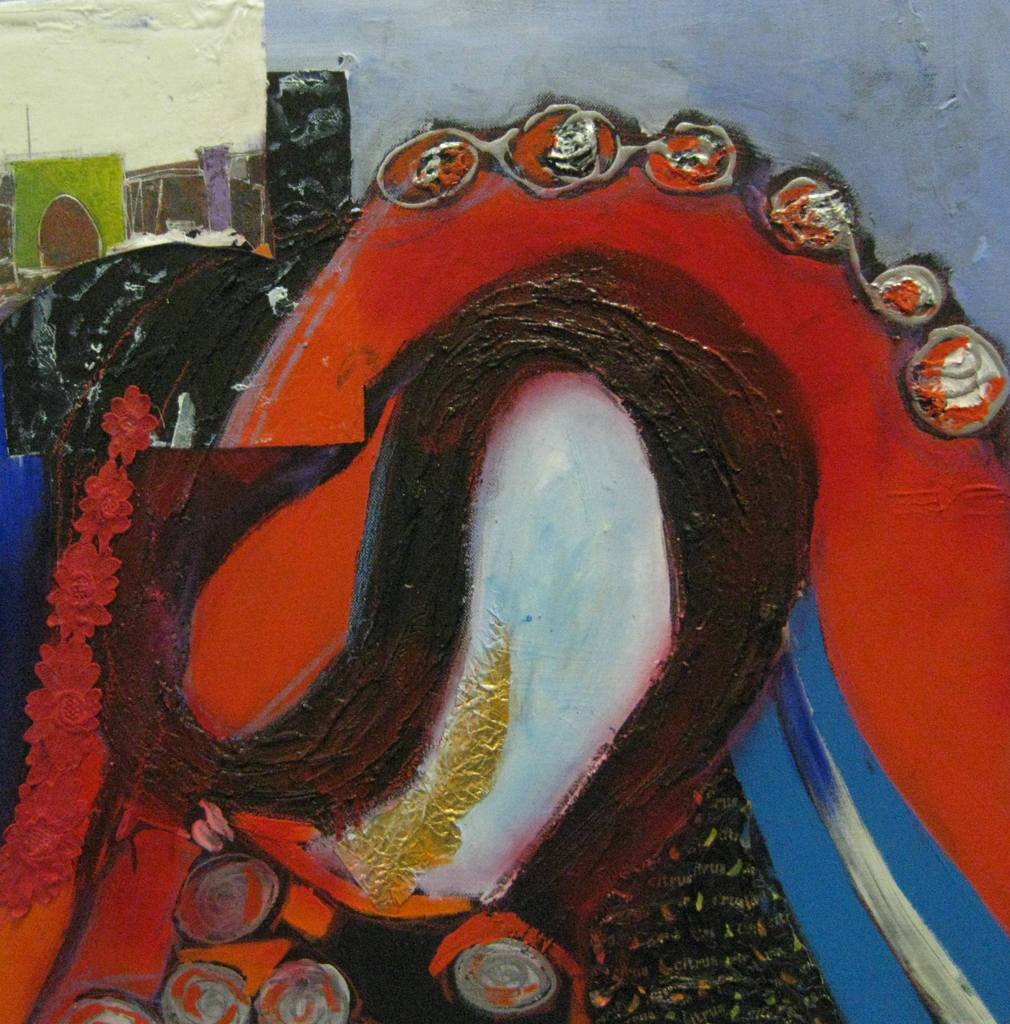Dit werk hoort bij een serie van 4, met veel rood, doet me zelf sterk denken aan een regenboog, vandaar de titel.