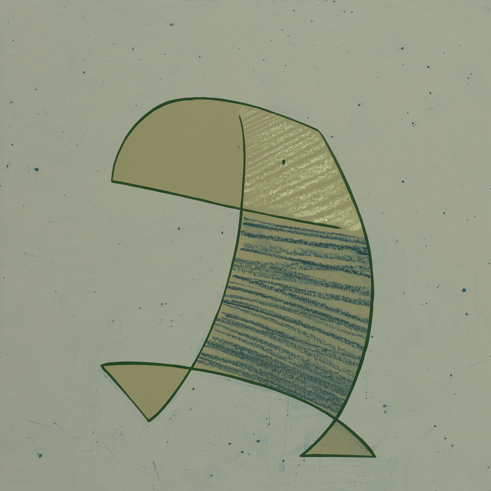 Schilderij van één Duiker in krijt en acryl. De gebruikte kleuren zijn taupe, grijs en groen.