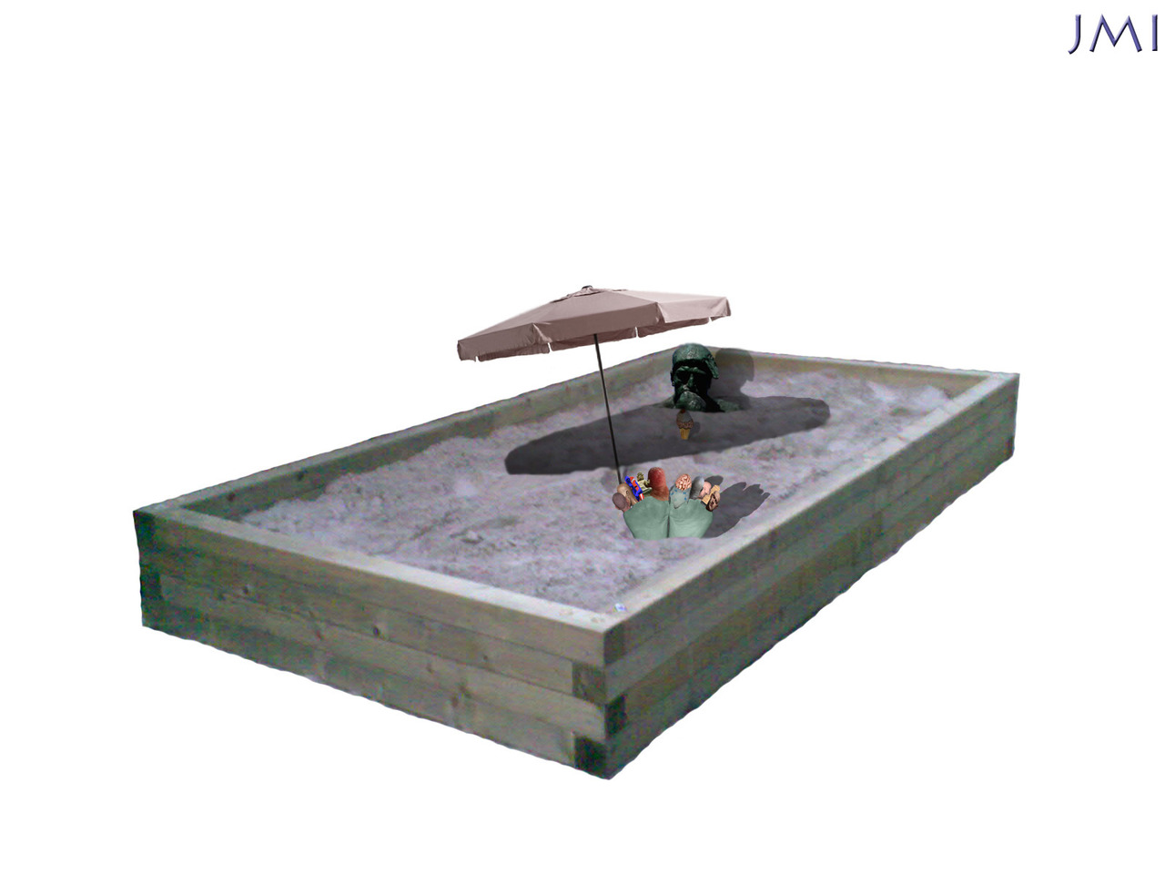 Zandbak met Denker en parasol.