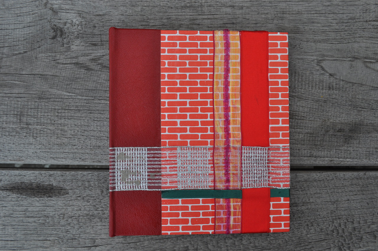 Handgebonden fotoboek. Gebonden met diverse soorten lint. 18 Pagina's