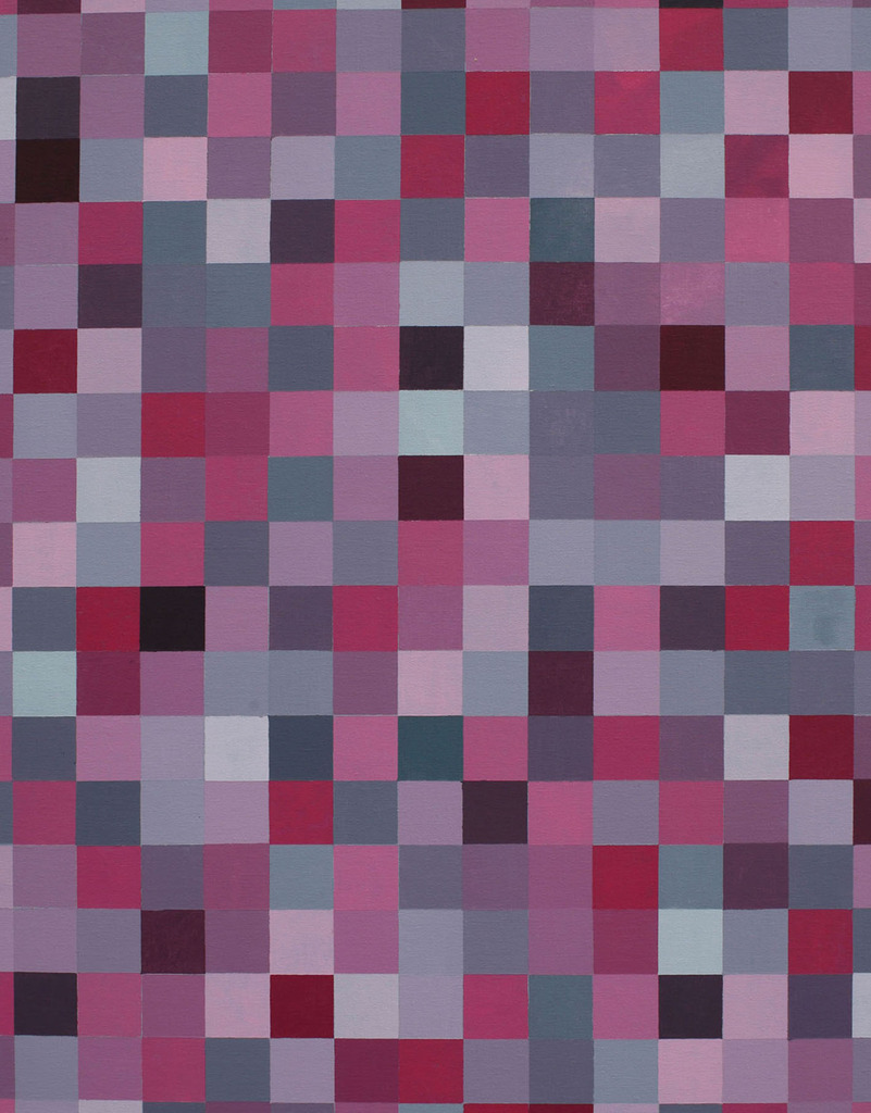 Tweede schilderij op basis van grijs uit rood, geel en blauw. Nu gemengd met rood en meer of minder wit.