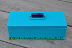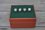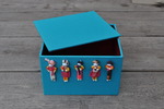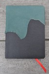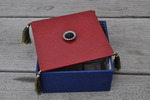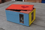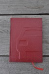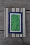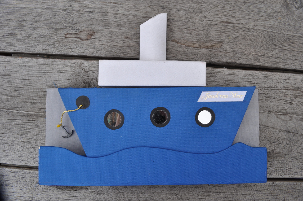 Aantekenboek in de vorm van een schip. Gevat in een houder. Gebonden in linnen met ramen van spiegelglas.