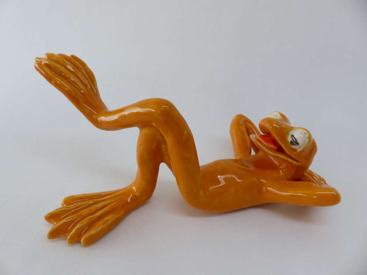 Kikker in luilekker stand, glazuur: boterbloem geel