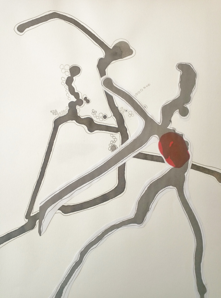 Collage met inkt en potlood. De vreugde spat van de figuur af! VERKOCHT