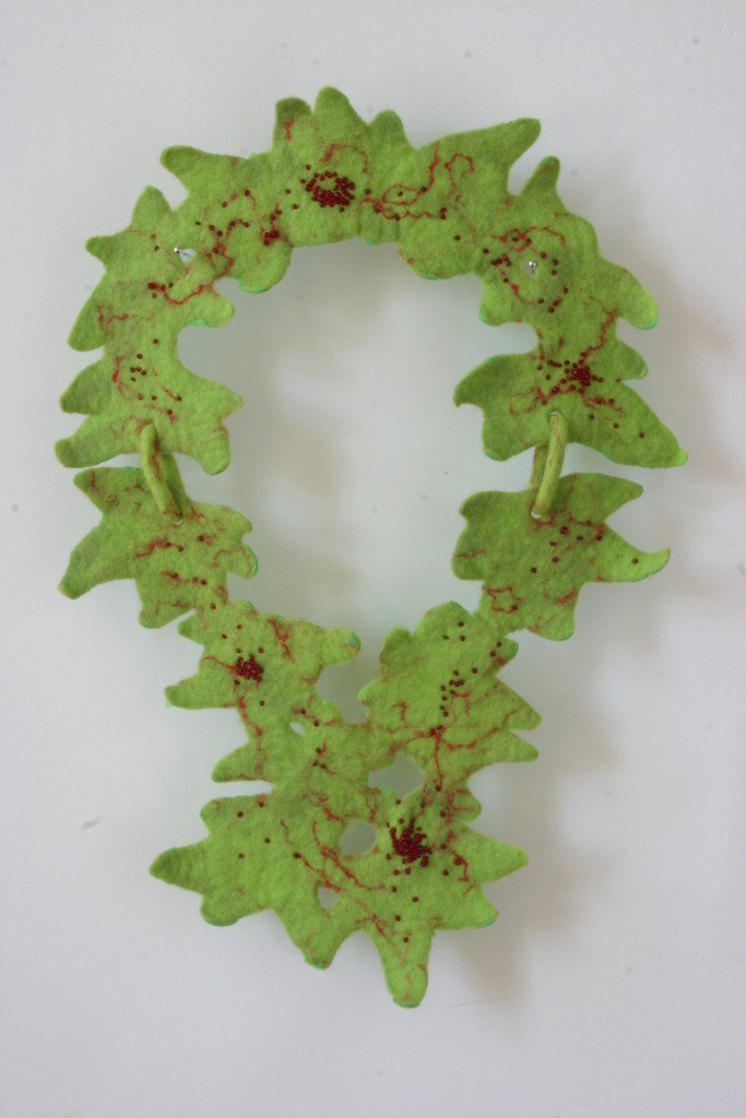Het materiaal waar ik mee werk is wol dat ik vervilt tot draagbare kunst en viltpanelen. In mijn werk staat het onderzoek en experiment centraal. De natuur is mijn inspiratiebron