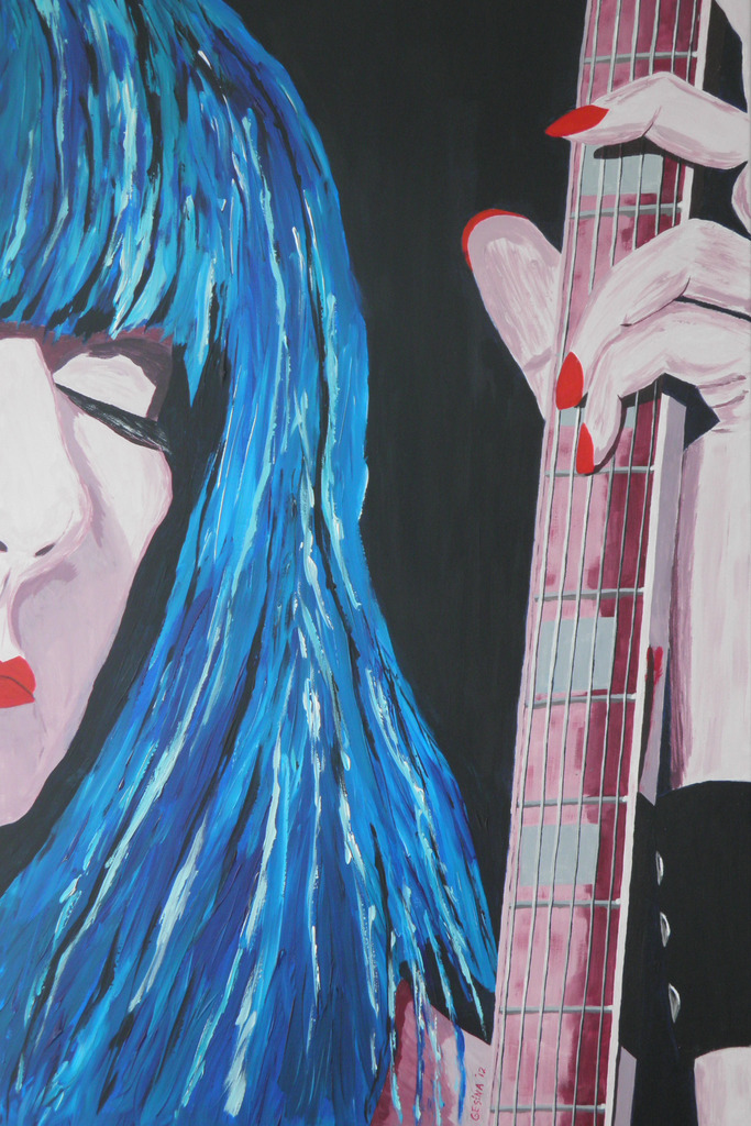 Paars Blauw Gesina Gea Vermeer Groen Rood Mens Portret Gitaar Liefde Muziek Zwart Doek Acryl
