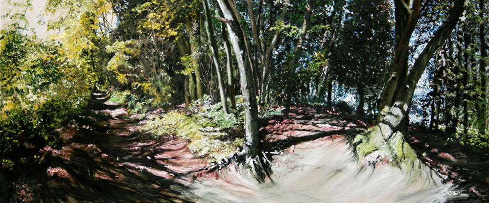 Het woord `ruimte’ is een sleutelwoord in het oeuvre van Karin Elfrink. Een aantal jaar geleden schilderde Karin Elfrink interieurs. Sinds een paar jaar heeft zij haar aandacht verlegd naar buiten, naar het landschap van haar jeugd. Dit landschap beschouwt zij eveneens als een ruimte, waar je deel van uitmaakt en die zeker niet willekeurig is: heden en verleden lopen door elkaar.