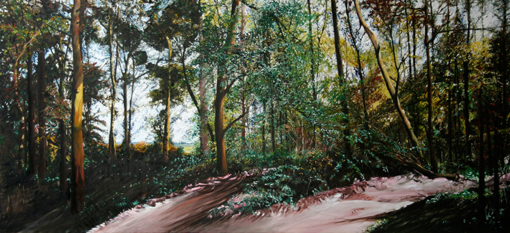 Het woord `ruimte’ is een sleutelwoord in het oeuvre van Karin Elfrink. Een aantal jaar geleden schilderde Karin Elfrink interieurs. Sinds een paar jaar heeft zij haar aandacht verlegd naar buiten, naar het landschap van haar jeugd. Dit landschap beschouwt zij eveneens als een ruimte, waar je deel van uitmaakt en die zeker niet willekeurig is: heden en verleden lopen door elkaar.