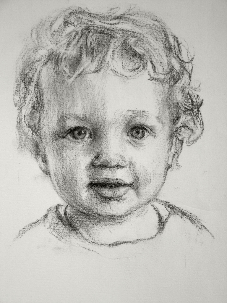 Kind Tekening Houtskool Op Papier