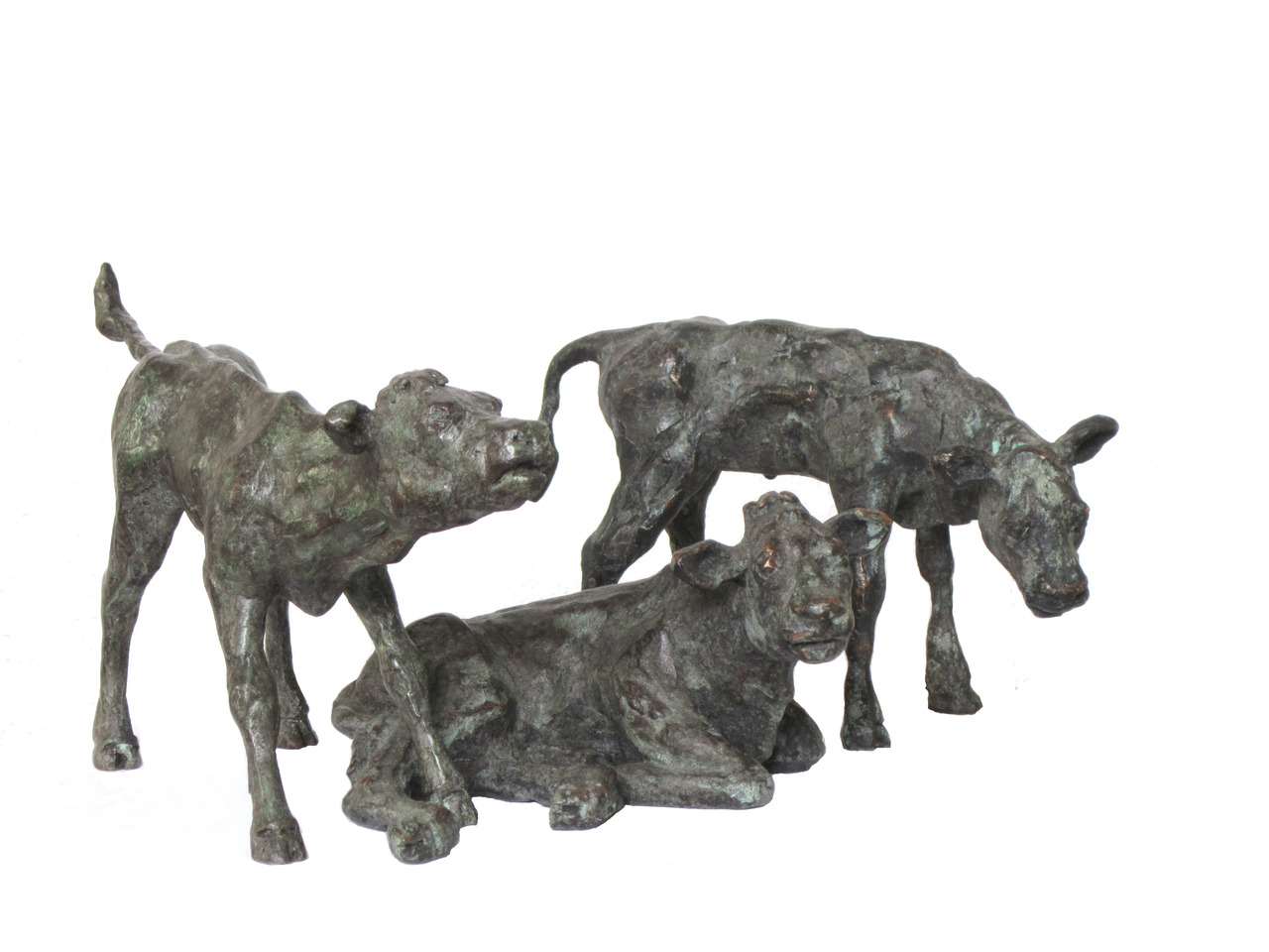 Groepje kalveren bij elkaar, ook los te bestellen met uitzondering van kalfje III (deze is reeds verkocht). Ieder kalfje is een unicum.