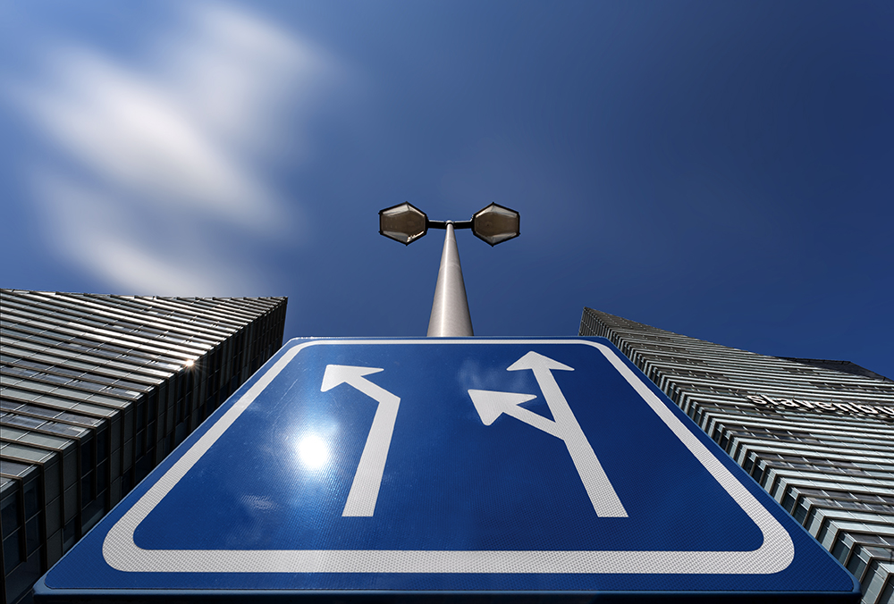 Lamps straight ahead, clouds to the left