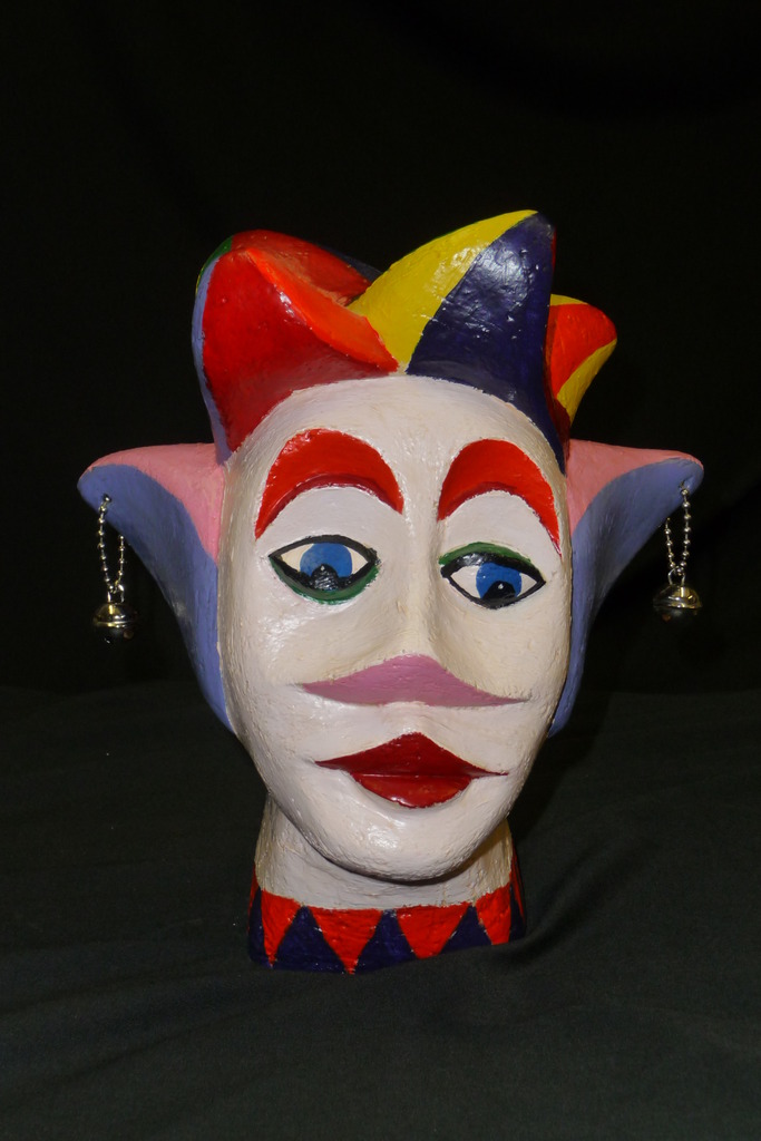 Nar met gekleurde muts, te combineren met nar met groene muts en prins carnaval