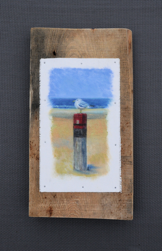 Meeuw geschilderd in olieverf op katoen en juthout. Verkocht.