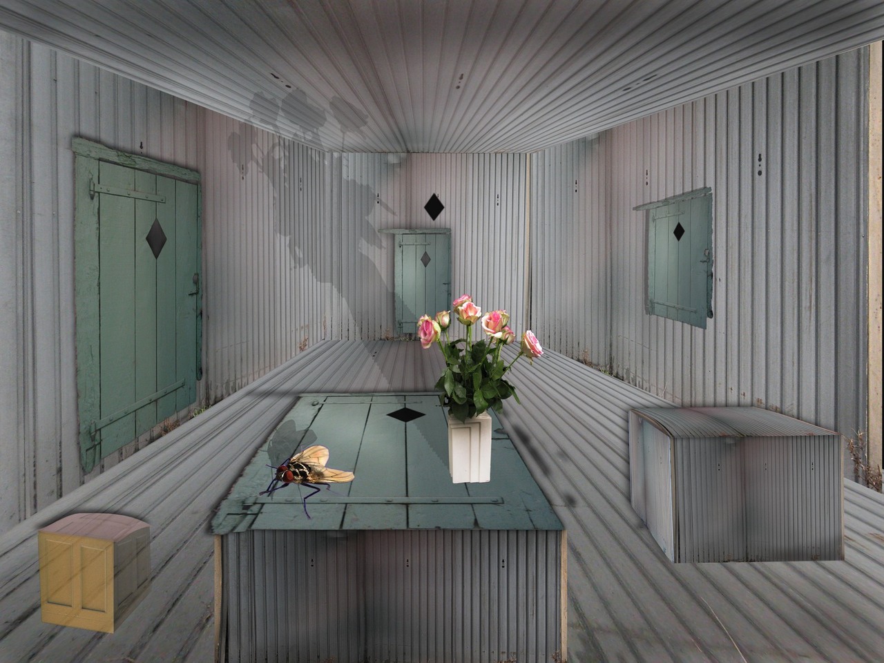 Gemaakt van een ijzeren golfplaat, zodat de bos rozen, die ik gekregen had van een onbekende, een speciale plaats kregen.
