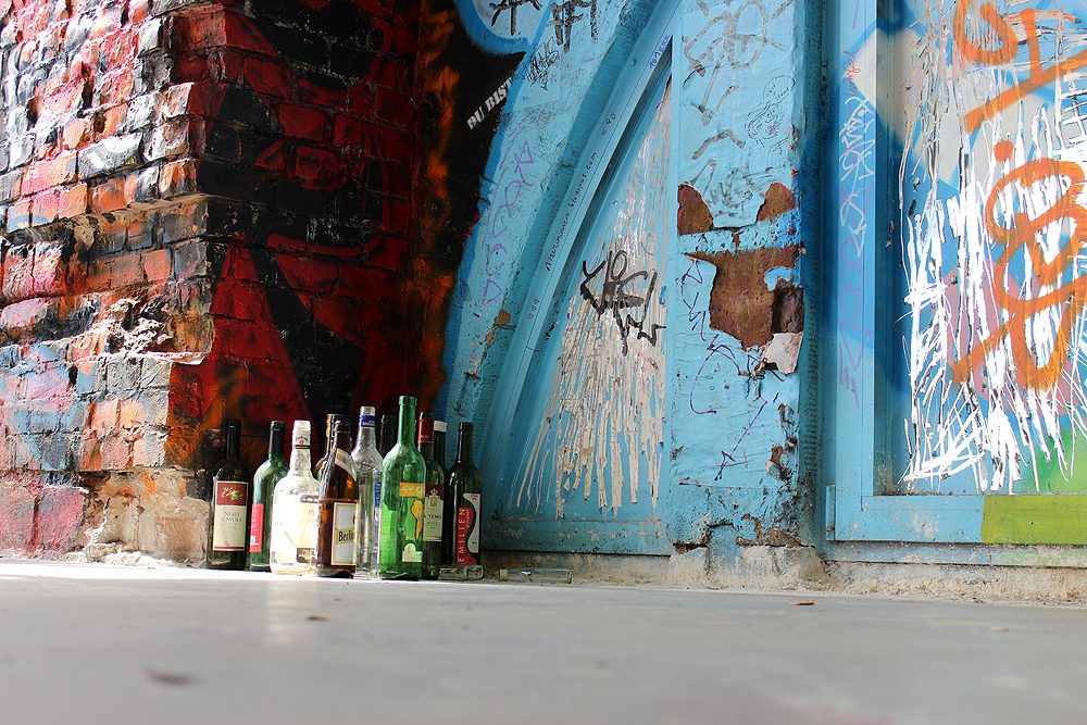 Wat wijnflessen in het kunstenaars-atelier Tacheles in Berlijn.