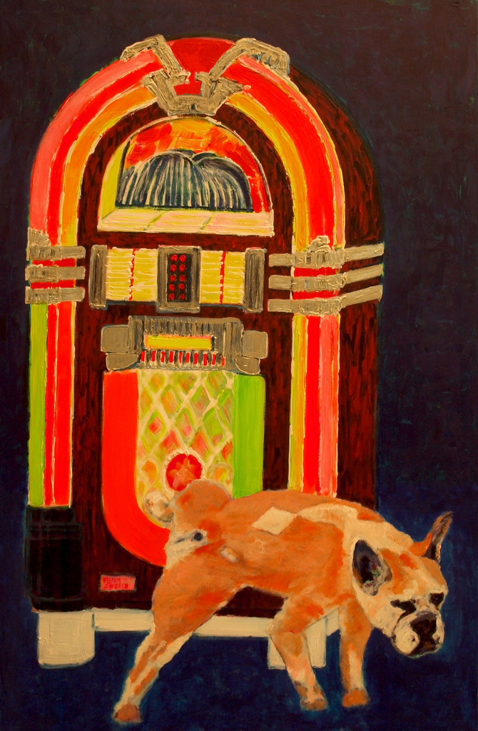 Hond Bulldog Neonkleuren Jukebox Geurspoor Wurlitzer Peeing Henk Snoek Snelle Volendam