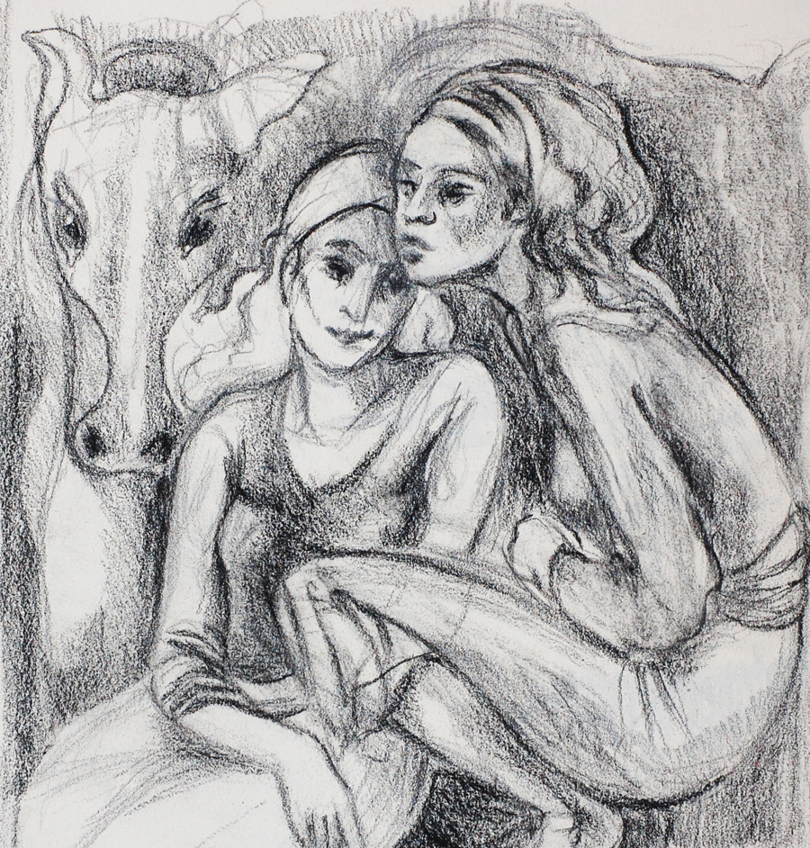 Drawings Portrait Girls Horses Paard Meisjes Tenkening Krijt
