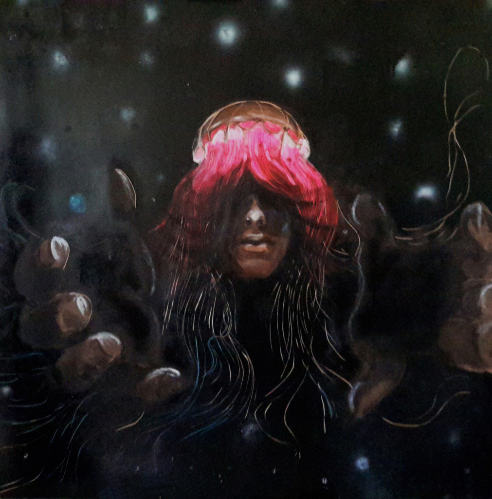 Houtsnede/inkt/acryl/spuitverf/vernis