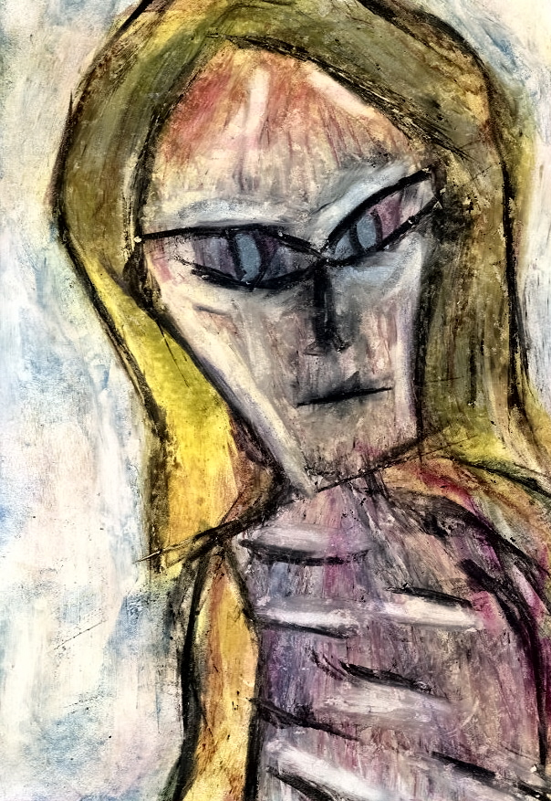 Enge ogen, strakke mond, pijn, nauwelijks te vedragen, het gezicht, een open wond vol ongeuit onbehagen.