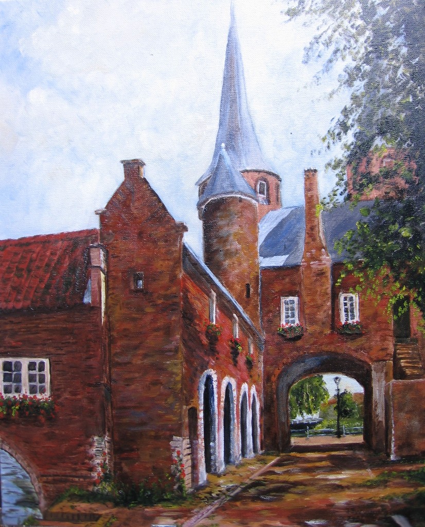 Stadspoort Delft Olieverf Stadsgezicht
