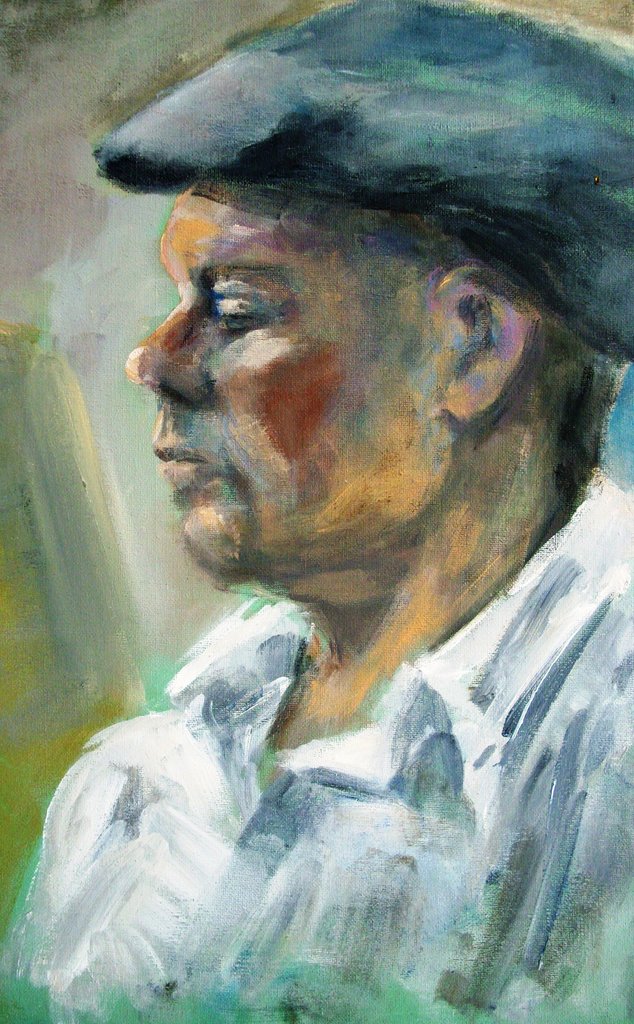 Acryl Portret Man Pet Schildering