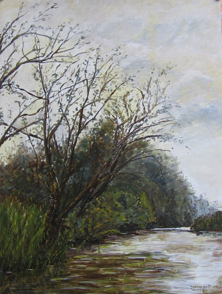 Jan van den Broek (1951), autodidact, schildert landschappen in een naturalistische trant, voornamelijk in Zuid-Holland, Rijswijk en omgeving, evenals in de Périgord en de Limousin (F); sterk geïnspireerd door de Haagse School en met name door het werk van zijn grootvader Jacob Lucas Jongsma (1893-1926), zie Schilderslexicon P. Scheen. [PG]