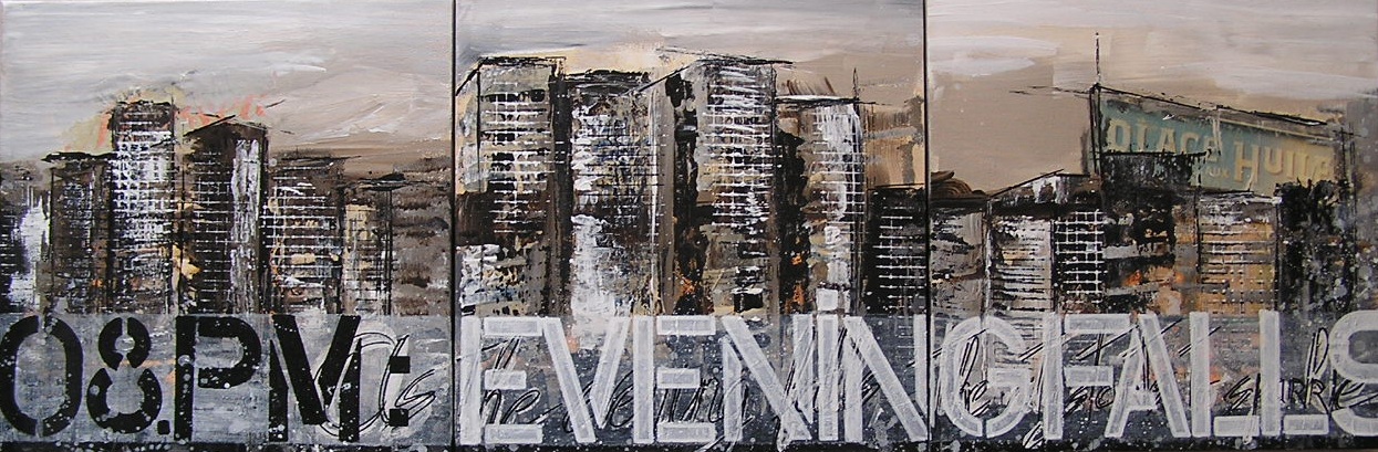 Sunset Zonsondergang Letters Stad Avond City Evening 3-luik