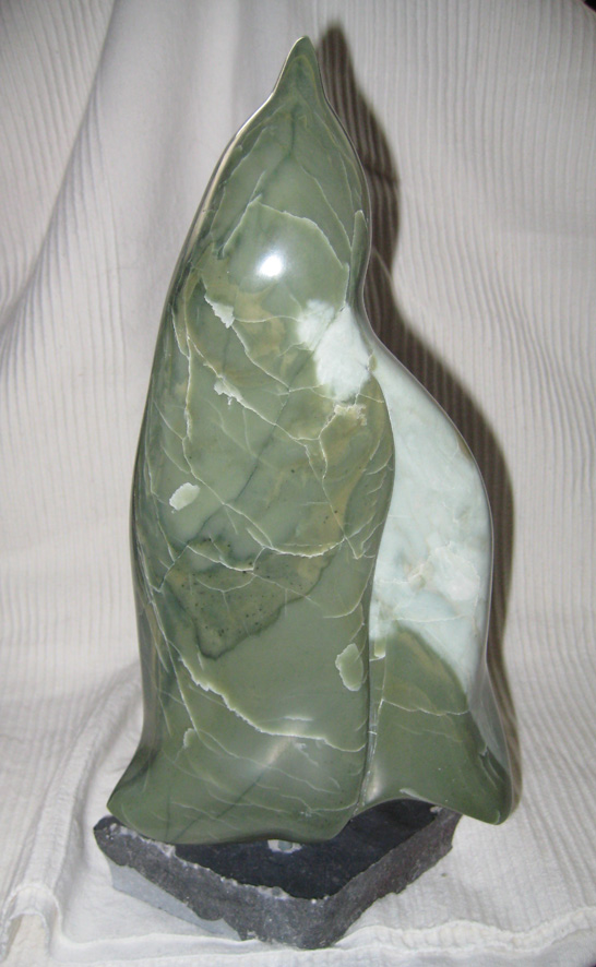 Pinguin, groene speksteen, achterzijde