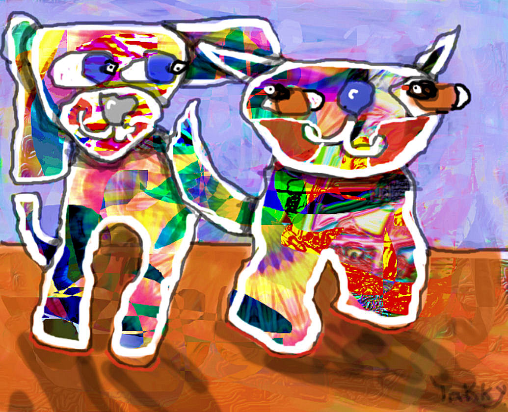 Hond Kat Wij Samen Digitaal Kleur Vorm Beesten Geel Blauw Wit Groen Rood