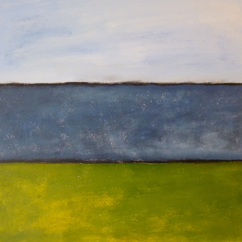 Het groen van de dijk loopt moeiteloos over in het blauw van de zee. VERKOCHT.