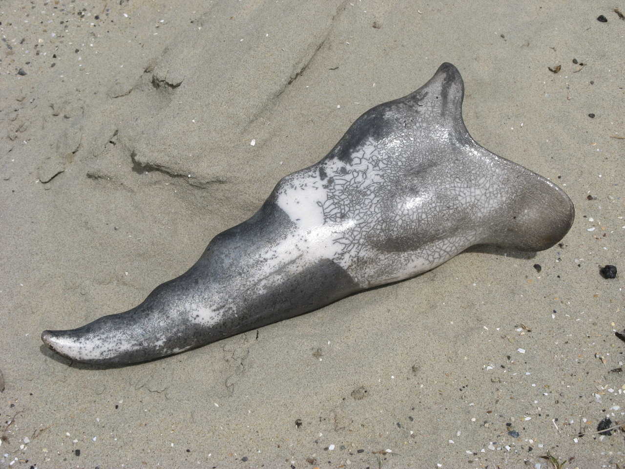 Uit de serie naar aanleiding van de krabbenpunt. Raku, aardewerk.