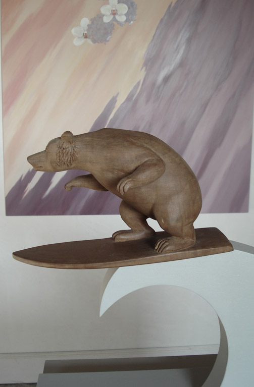 Hout Beeld Beeldje Eiken Beeldhouwwerk Houtsnijwerk Eikenhout Snijwerk Ludiek Notelaar Surfer Golf Humor Sculptuur Dier