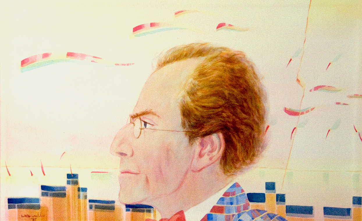 Mahlers kop in deze aquarel is gebaseerd op de foto gemaakt in oktober 1909 in Amsterdam t.g.v. zijn directie van zijn 7e symfonie met het Concertgebouworkest . Van de drie bekende enprofiel genomen foto's , waarschijnlijk in het concertgebouw , genomen door Alfred Roller , is uitgegaan van de tweede ; Mahler zit van de zij gezien , voor een voor de gelegenheid opgehangen tapijt als achtergrond . Zijn bijzonder hoge voorhoofd en relatief korte achterhoofd worden door deze pose wel zeer benadrukt . Het vaderjacob-thema in het derde deel wordt uitgedrukt door de band met geometrische , gekleurde vlakjes die over de hele breedte van de basis van het schilderij loopt . Zie ook : Gilbert Kaplan : The Mahler Album , foto nr. 112 .
