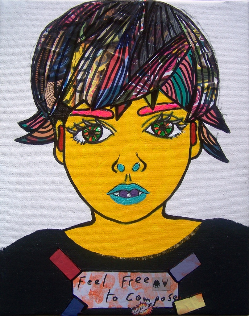 Kinderportret in acryl en papier