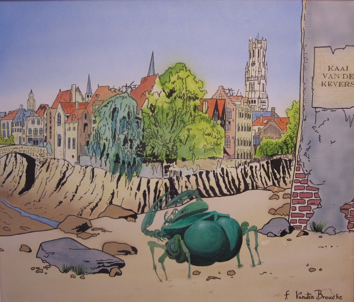 Het verval van een stad is ook hier het hoofdthema. De Brugse reitjes zijn compleet uitgedroogd en de gebouwen zijn verweerd en verlaten. Behalve een gigantisch insekt (kever) is er geen mens te bespeuren. Het leven gaat voort maar dan in een andere vorm en gedaante. De werkelijkheid van ons voortbestaan zou er werkelijk zo kunnen uitzien. Het is een werk met een visionaire boodschap.