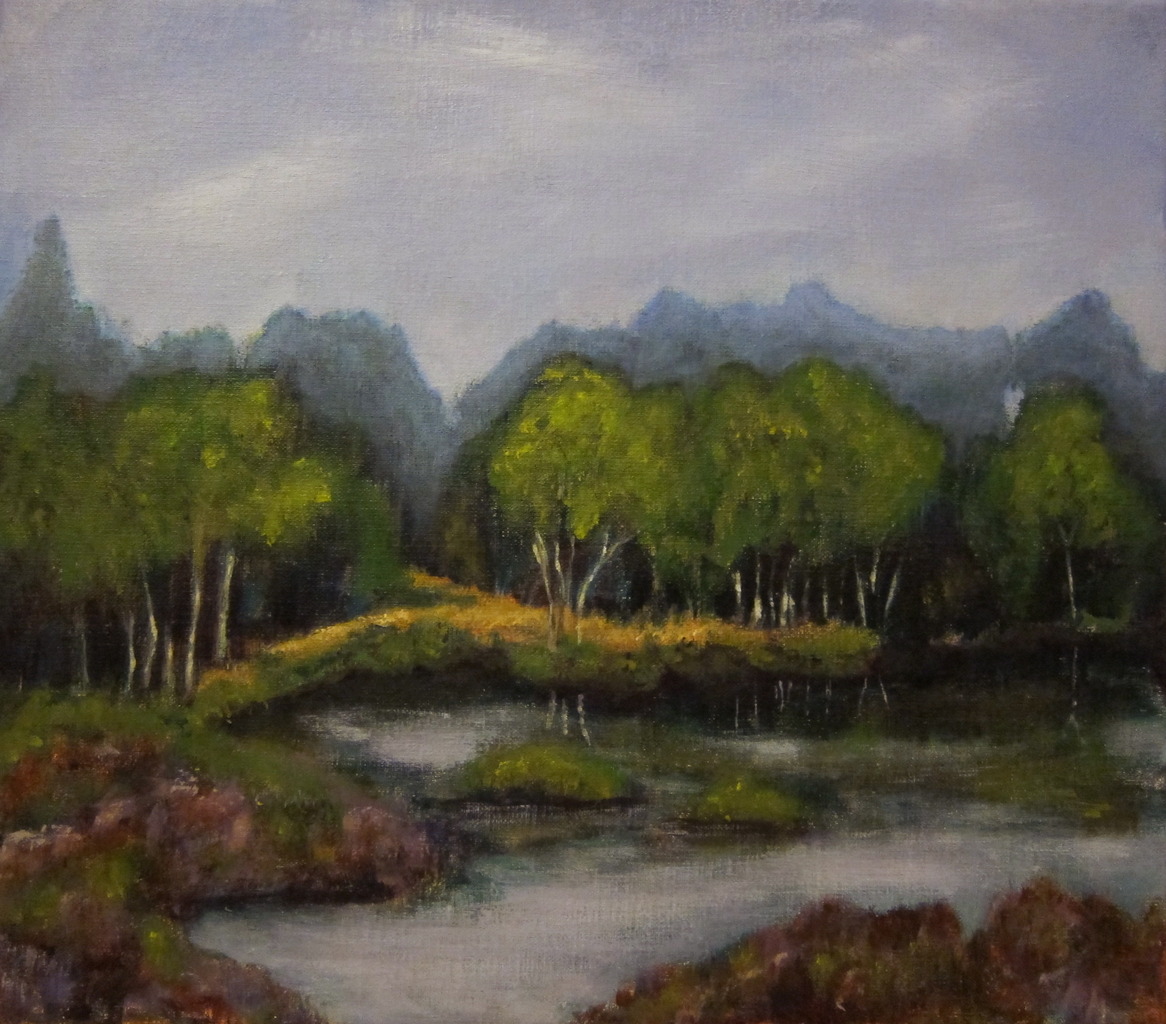 Rood Oranje Geel Blauw Groen Water Bomen Gras Lila Berken Gagel Veenplas