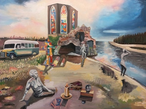 Peter Boonstra Kunstschilder Almere. De schilderijen van Peter Boonstra (1957) kenmerken zich door het romantisch en soms magisch realisme en surrealisme. Zijn droomachtige schilderijen zullen uw voorstellingsvermogen prikkelen. Bovendien verrast de kunstenaar je met zowel zijn figuratieve als abstracte werk. Peter Boonstra kunstenaar Almere.