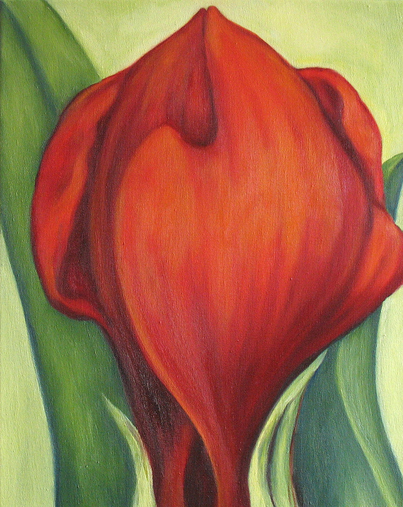 Schilderij Rood Groen Canvas Olieverf Oilpainting Painting Red Green Amaryllis