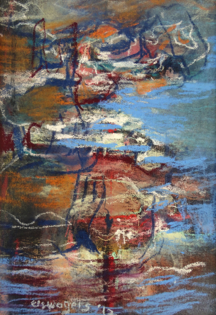 Onde a Agua toca a Margem, Waar het water de oever raakt. Pastelkrijt op board.